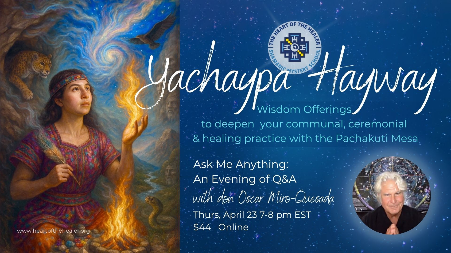 Join our global PMT family for this special event with the founder of The Heart of the Healer Shamanic Mystery School. During our time together, don Oscar will offer his decades-long experience as shamanic ceremonial adept, kamasqa curandero, and the originator of The Pachakuti Mesa Tradition⢠to answer questions and offer his guidance and wisdom for all who wish to participate.